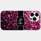 Dark Pink faux shiny glitter sparkles Monogram Case-Mate iPhone Case
