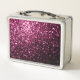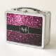 Dark Pink faux shiny glitter sparkles Monogram Metal Lunch Box