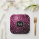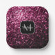 Dark Pink faux shiny glitter sparkles Monogram Paper Plate