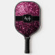 Dark Pink faux shiny glitter sparkles Monogram Pickleball Paddle