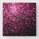Dark Pink faux shiny glitter sparkles Square Wall Clock