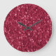 Dark pink red magenta faux sparkles glitters large clock