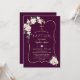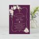 Dark Plum Blush White Flowers Gold Girl Baptism Invitation