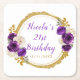 Dark Purple and Gold Elegant Flower Birthday Party Square Paper Coaster