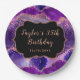 Dark Purple and Pink Sequins Agate Birthday Paper Plate