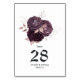 Dark Purple and Rose Gold Floral Wedding Table Number