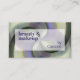 Beautiful artistic makeup artist business card. With contemporary dark purple, black, and pale green coloured round spiral abstract floral pattern with a modern retro and minimalist font. Click on 'Personalise' to find the template ready to be customised with your unique business name, profession and contact information, text and QR code of your choice. This particular pretty and unique design was made for those who like sophisticated classic geometric abstract designs.