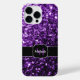 Dark Purple faux glitter sparkles bling Monogram iPhone Case