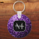 Dark Purple faux shiny glitter sparkles Monogram Key Ring