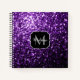 Dark Purple faux shiny glitter sparkles Monogram Notebook