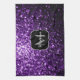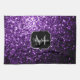 Dark Purple faux shiny glitter sparkles Monogram Tea Towel