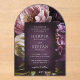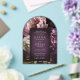 Elegant arch acrylic wedding invitation featuring a dark purple floral theme. The moody color palette is great for a fall wedding.