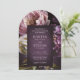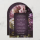 Elegant arch wedding invitation featuring a dark purple floral theme. The moody color palette is great for a fall wedding. Use the template to add a photo and generate a QR code or remove either in the design editing tool.