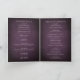 Elegant folded wedding program featuring a dark purple floral theme. The moody color palette is great for a fall wedding.