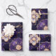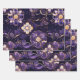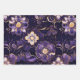 Dark Purple Floral and Faux Gold Wrapping Paper Sheet