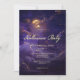 Announce your party under the glow of a magical night. Our enchanting Halloween party invitation features a captivating dark sky, painted in deep, moody purples. Wispy clouds shimmer with a touch of faux gold, catching the soft light of a magnificent full moon. The ethereal scene sets the stage for your night, inviting your guests to celebrate under the watchful gaze of the moon. Your party details are showcased in vintage fonts, ensuring they stand out beautifully against the dramatic backdrop. Created by Simply Farmhouse Press.