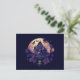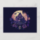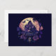 Celebrate the spooky season in style with our hauntingly beautiful Holiday Postcard! This captivating postcard features a mesmerising image of a deep purple haunted house, silhouetted against a massive full moon that casts an eerie glow. Surrounding the haunted house are delicate purple leaves, elegant roses, fluttering butterflies, and an enigmatic skull, creating a spellbinding and mysterious visual display that perfectly captures the essence of Halloween.