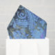 Floral hydrangea in a darker purple, pink, and blue, with black dragonfly, and postmark ephemera with a cyan blue floral art nouveau style base. Girly vibe for furniture decor decoupaging.