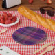 Dark Purple Madras Plaid Stripe Pattern Paper Plate