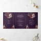 Dark Purple Moody Floral Frame QR Code Wedding Tri-Fold Invitation