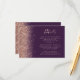 The left-hand edge of this elegant modern wedding details enclosure card features a rose gold faux glitter design. The customisable text combines pale rose coloured handwriting, copperplate and italic fonts on a dark purple background. The reverse side features a matching dark purple and rose gold glitter design.