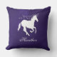 Transform your living space with this enchanting Dark Purple Unicorn Personalised Throw Pillow, a perfect blend of whimsy and elegance for unicorn theme home accents. This unicorn home decor piece features a mesmerising star-filled night sky background, with a majestic galloping unicorn gracefully galloping with a radiant star trail following behind. The celestial theme evokes a sense of wonder, with elegant script to personalise with your name or gift recipient's name, ensuring this pillow is as unique as your style. This mythical design blends charm and sophistication, making it a must-have for unicorn enthusiasts and celestial dreamers alike. Perfect for cosying up your sofa, bed, or favourite armchair, this throw pillow elevates your decor with magical allure.
