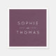 This wedding napkin features the names of the wedding couple in white against a dark purple colour back side. Check out other matching wedding items https://www.zazzle.com/collections/mauve_layered_geometric_dark_purple_wedding-119712420789591185?rf=238364477188679314&tc=rc .