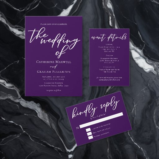 Royal Purple White Typography Evening WeddingDesigned by Elisha Seybold
