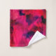 Towel set with a cool abstract background. Dark red and purple brush strokes create a bold modern design.