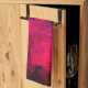 Kitchen towel with a cool abstract background. Dark red and purple brush strokes create a bold modern vibrant design.