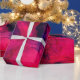 Wrapping paper with a cool abstract background. Dark red and purple brush strokes create a bold modern vibrant design.