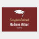 Congratulations! A white graduate cap is above the word 'Congratulations' in faux (not foil) gold script. Personalise with the graduate's name and year of graduating class. The other sheets are dark red with a pattern of white graduation caps.