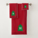 Dark Red Christmas Tree Custom Initial Elegant Bath Towel Set
