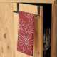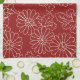Stylish and elegant red and off white flowers kitchen towel, customisable with your own text or photo, a unique and elegant addition to your kitchen decor.