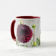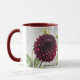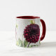 Enjoy your favorite hot or cold beverage in this coffee mug that features the photo image of a gorgeous, dark red Dahlia bloom. A lovely, floral design printed on both sides of mug. Select your mug size and style as desired.