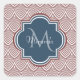 Dark Red Deco Scallops Navy Blue Monogram Name Square Sticker