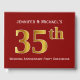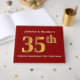 This guest book design features the ordinal number "35th" with a faux gold-like appearance. It also features customised names, and a dark red background. It could be used at a party for a married couple celebrating their thirty fifth wedding anniversary.