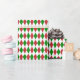 A wrapping paper designed with a dark red, green and white harlequin pattern. Customise the white background colour among other options.