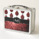 Dark red ladybug faux glitter sparkles Monogram Metal Lunch Box