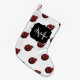 Dark red ladybug faux glitter sparkles Monogram Small Christmas Stocking