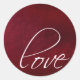 Dark red swirl design with love in script font. Great stickers for envelopes, gift bags and other wedding decorations.