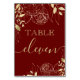 Dark Red Maroon & Gold Peony Modern Floral Wedding Table Number