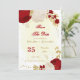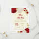 Romantic dark red & white flowers with gold leaves botanical save the date invitation