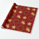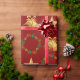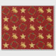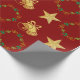 Dark Red Wrapping Paper w Gold Bells, Stars Wreath