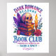 Vibrant, colourful design featuring a stack of books with a skull on top, feathers, lit candle dripping wax, and a rose. The colourful text reads: "Dark romance readers book club. I prefer my fairytales dark and spicy". This design is available on a wide variety of products.
