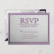 Simple and chic dark royal purple pinstripe outline on grey gradient background and colour block backing, RSVP Card. Very classic and sophisticated design for any event. All photo print.