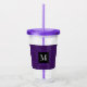 Dark Royal Purple Striped Custom Single Initial Acrylic Tumbler