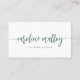 Simple and elegant business card design features your name or business name in modern, hand lettered script typography. Add an additional line of text beneath in clean, modern block lettering for your occupation or title. Personalise the reverse side with your contact details. A chic and professional choice in nature inspired dark sage green for any occupation.