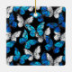 Dark Seamless Pattern with Blue Butterflies Morpho Ceramic Ornament