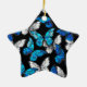 Dark Seamless Pattern with Blue Butterflies Morpho Ceramic Tree Decoration